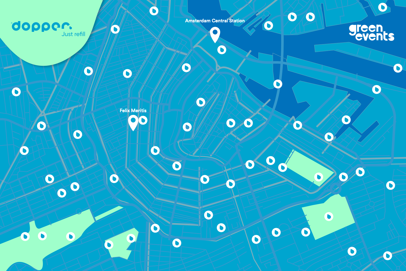 Eager to refill but not sure where? Well, Amsterdam boasts 600+ publicly accessible water taps providing the highest quality of tasty drinking water, for free! You can easily find your nearest water tap by typing ‘Water Tap’ into Google Maps, because Dopper included them. So whether you’re traveling from your home, hotel, or train station through downtown Amsterdam to ADE Green, you now know where to go for a refill. Arriving at Schiphol? The airport has stopped the sale of plastic bottles at some of their stores, while making complimentary tap water more widely available. Traveling by train? The NS stations have a total of 200 water taps, so at nearly every station you can refill your bottle on the go.