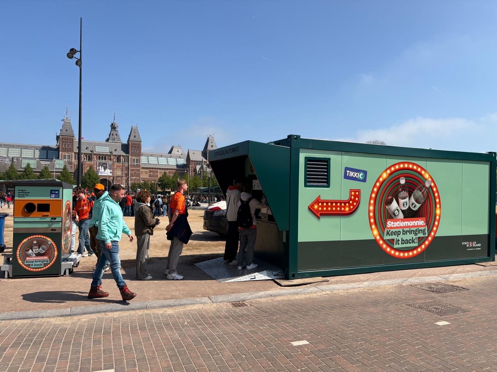 Statiegeld bulkmachine op het Museumplein in Amsterdam tijdens Koningsdag