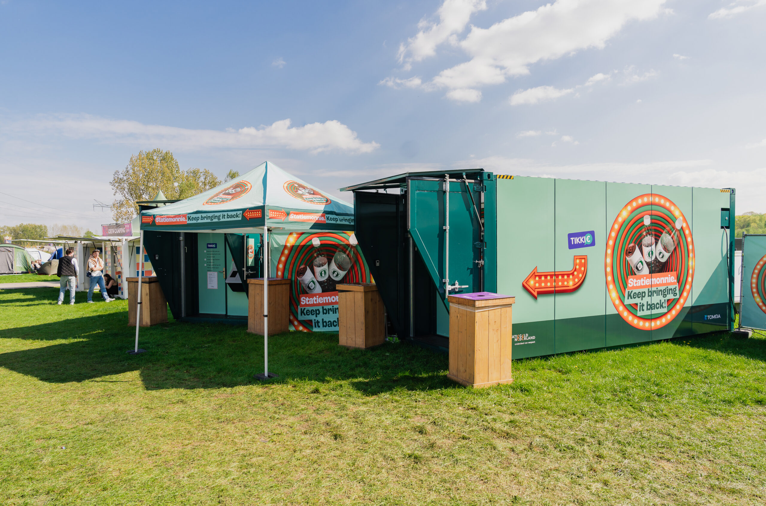 Op de festivalcamping kregen bezoekers bij de ingang speciale statiegeldzakjes om hun lege verpakkingen in te verzamelen. Dat maakt het inleveren praktischer, de volle zak kan in één keer leeggegooit worden in de bulkmachine, en de zakjes stimuleren ook daadwerkelijk goed gedrag. Want als je het in de speciaal daarvoor voorziene zak kunt gooien, waarom zou je het dan met het gewone afval vermengen? Bovendien krijg je na afloop de keuze om je geld terug te krijgen of om het te doneren aan een goed doel. Dit soort laagdrempelige ideeën maken het steeds eenvoudiger om festivals en evenementen schoon te houden.
