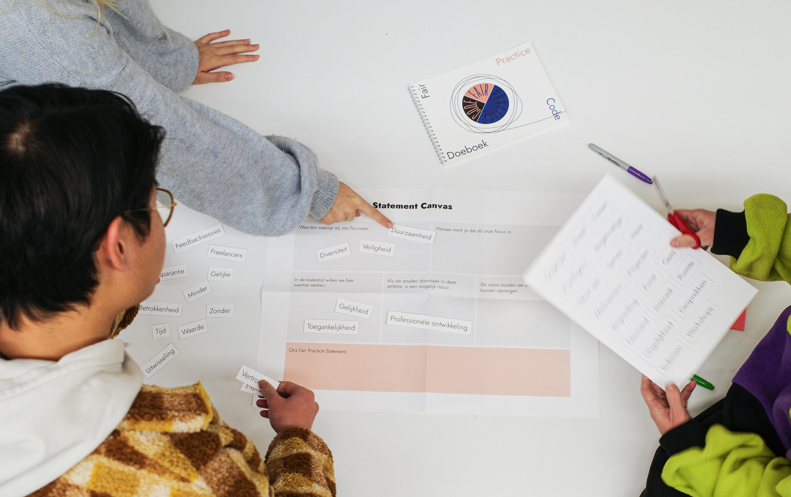Deelnemende organisaties ontvangen allen de Fair Practice Code DIY workshop. Deze wordt door de organisatie of binnen het team uitgevoerd. De uitkomst is een Fair Practice Code statement. Lees hier meer informatie over de workshop.
