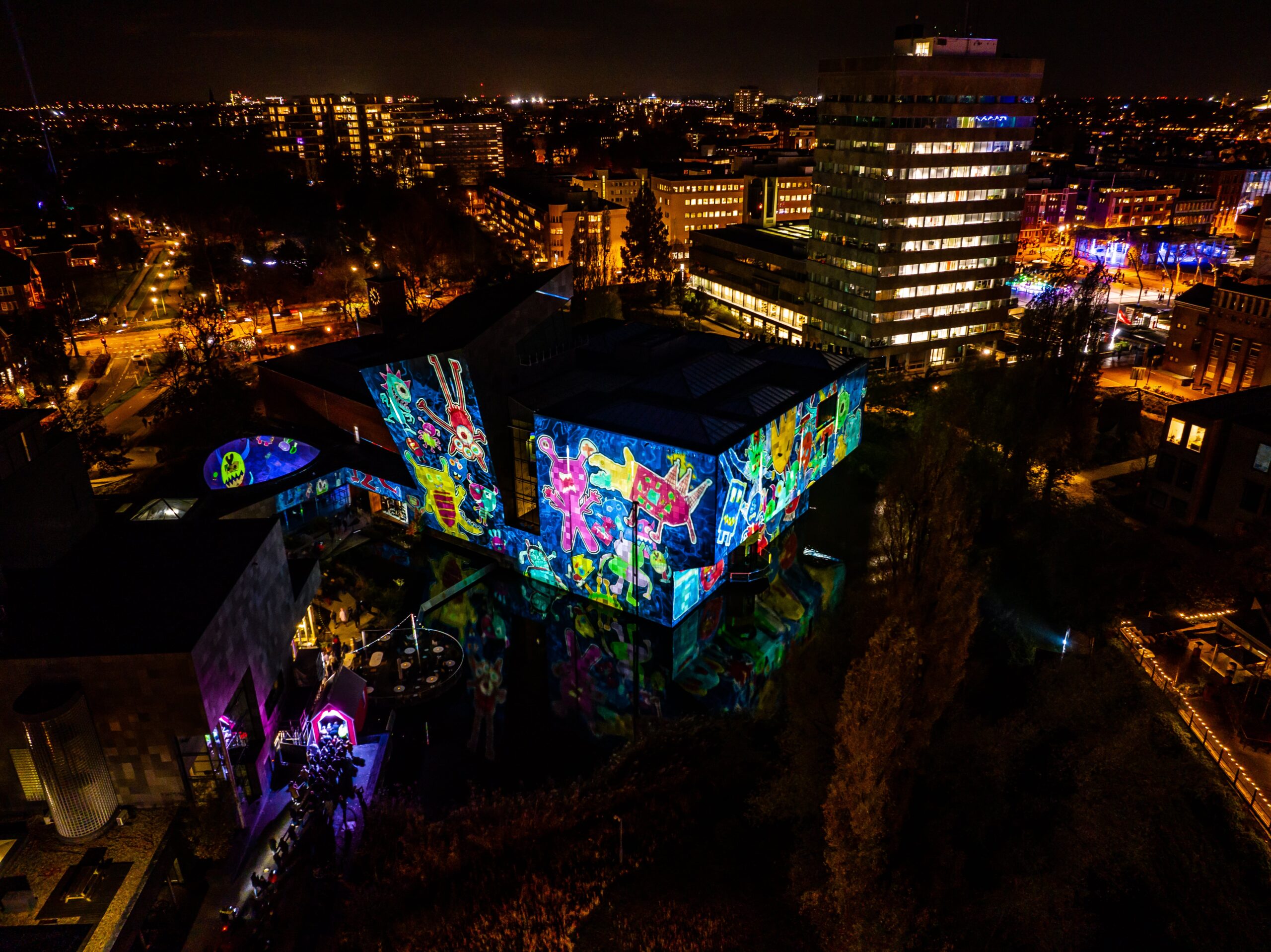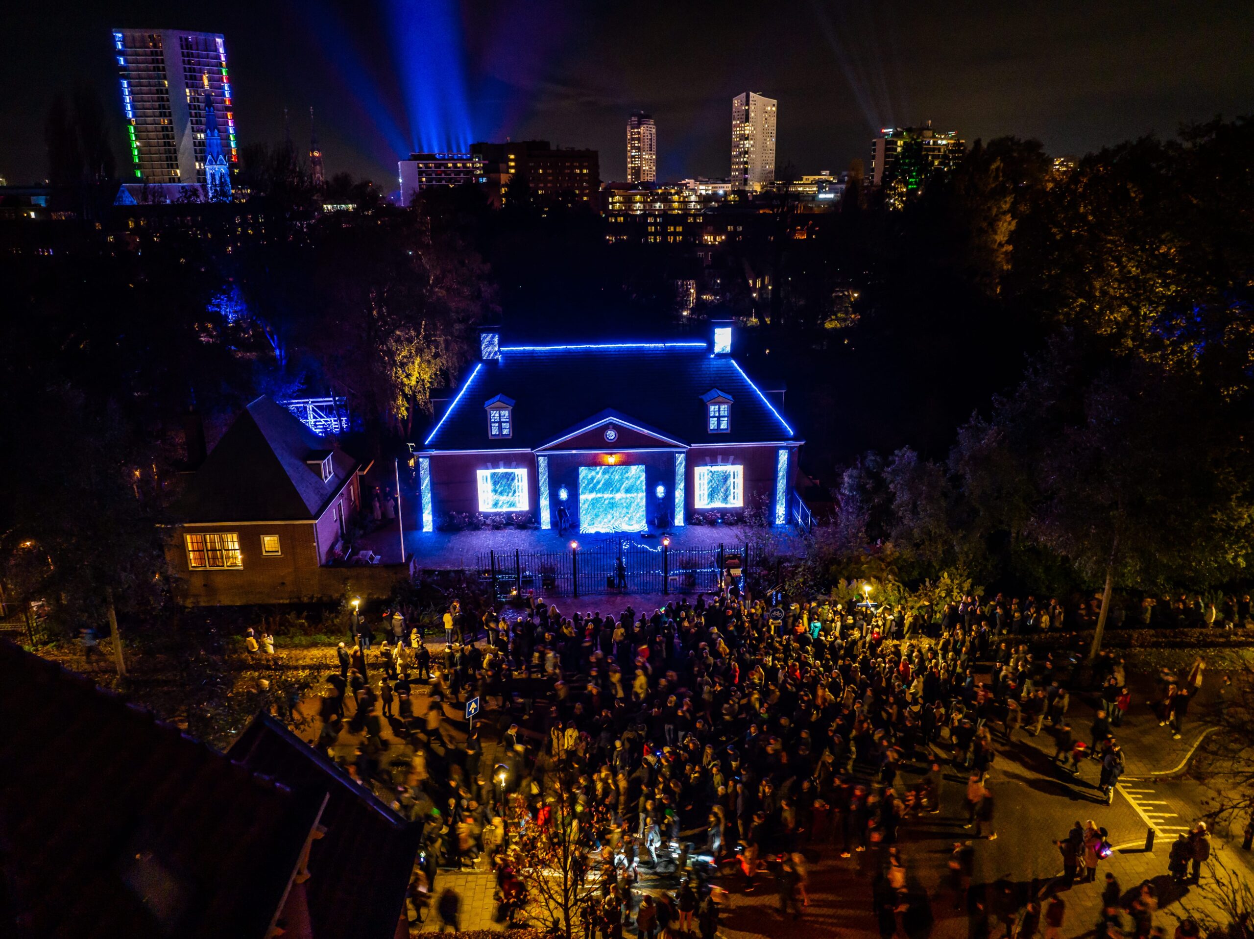 GLOW kende dit jaar 33 lichtkunstwerken, welke bij elkaar in 9 dagen 5000 Kwh aan elektriciteit verbruikten. Daarnaast verbruikt de organisatie 2000 Kwh aan elektriciteit – denk aan accomodatie voor crew. Omdat wij gehoor geven aan de oproep van de Europese Unie om in 2022 jaar minimaal 10% aan energie te besparen, doofden we dit jaar van maandag tot donderdag één uur eerder de lichten. Namelijk om 22:00 in plaats van 23:00. Hiermee bespaarden we 500 Kwh. Bij elkaar is het totale energieverbruik dus 6500 Kwh. Dat is vergelijkbaar met het gemiddelde verbruik van ongeveer 100 Nederlandse huishoudens in diezelfde 9 dagen.