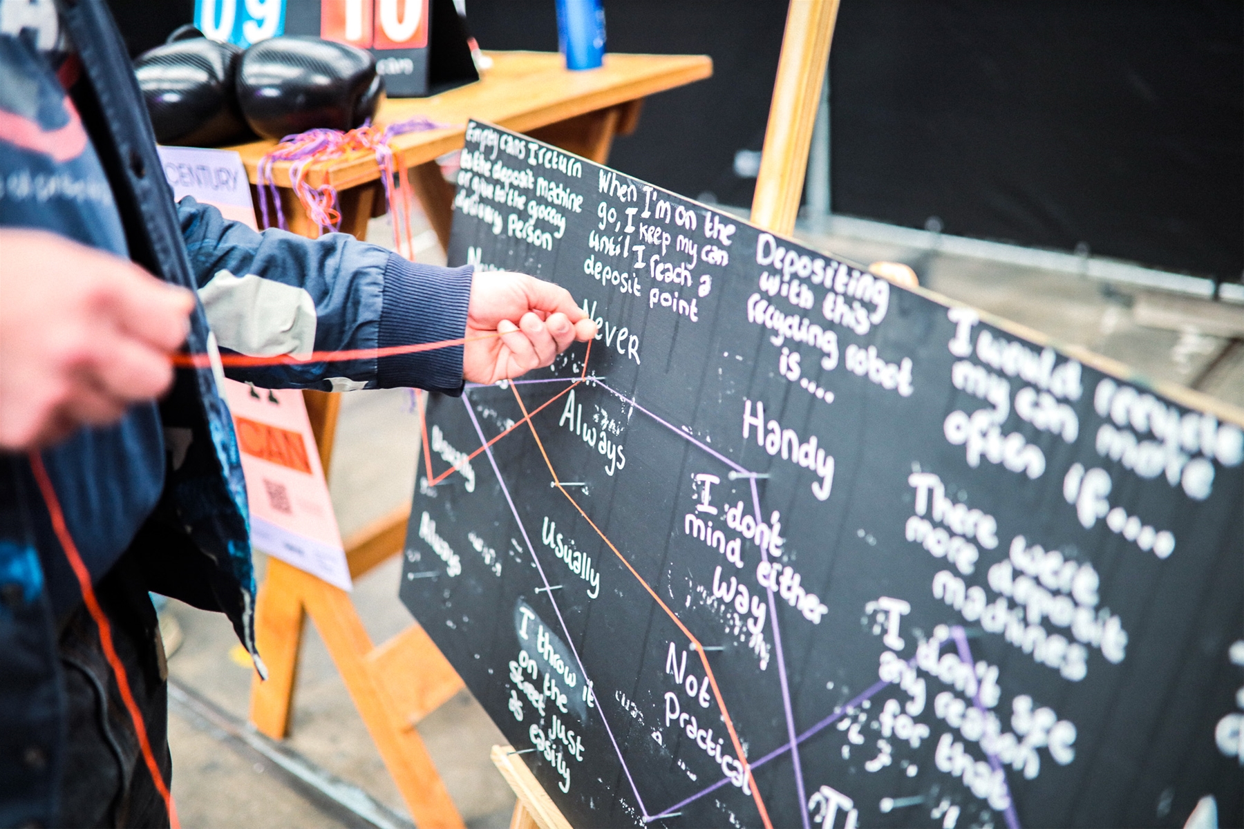 At DGTL, we minimize waste by designing our event circular. It is a process by which products are designed with ease of assembly and disassembly in mind. Next to that, consumption material waste becomes the resource for new products. As such, we moved away from waste collection areas behind the scenes, to a “Resource Street”, which is central for all visitors to see. The Resource Street consists of a “Recycle Hub” and a “Resource Storage”. The Recycle Hub works to separate all visitor waste, so the new “resources” can be picked up for further use.