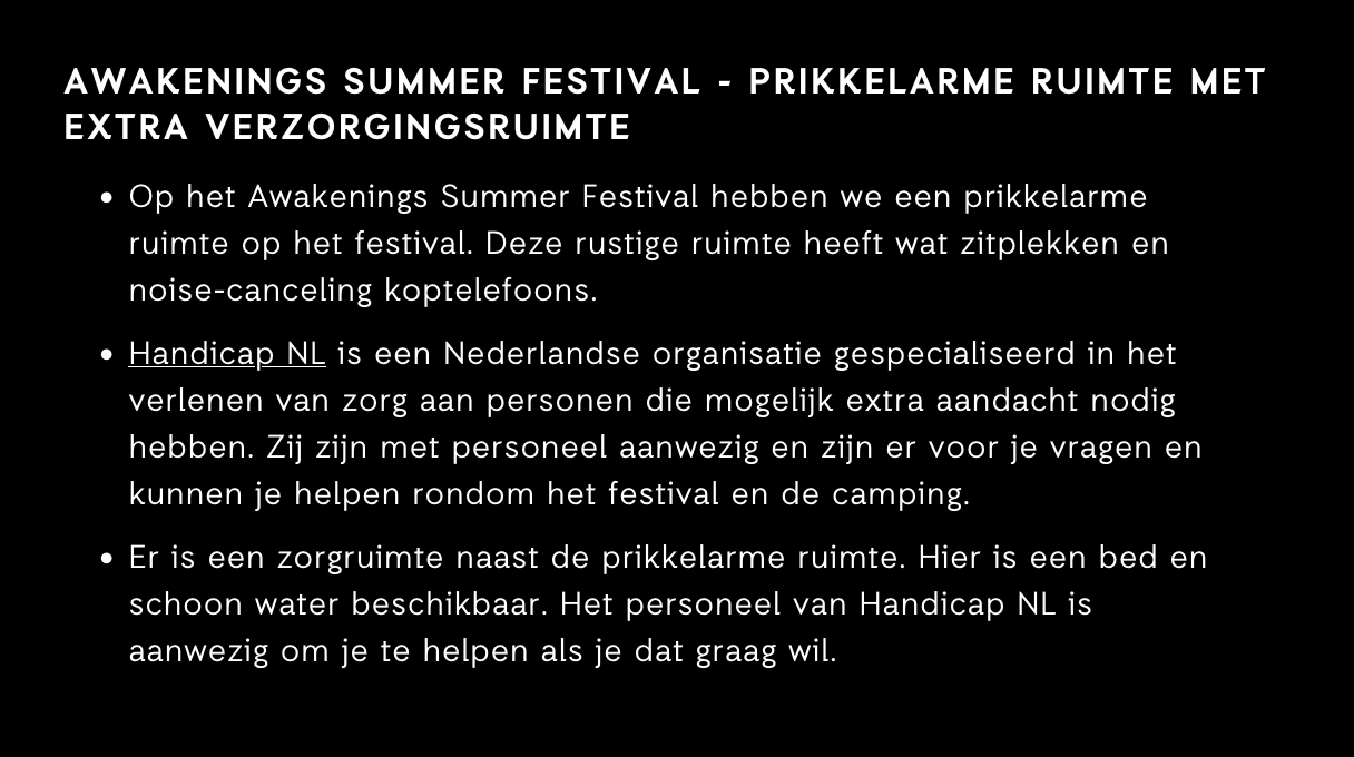 Voorbeeld: Awakenings Festival faciliteert een prikkelarme ruimte