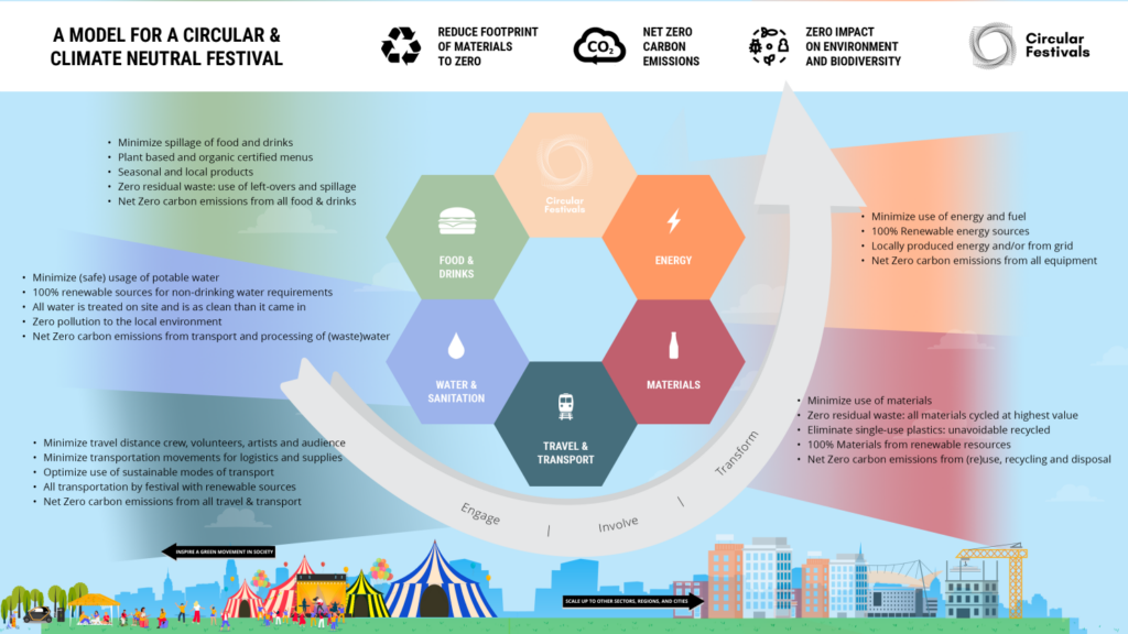 A circular approach to water at festivals isn’t currently normal practice, but there are festivals already testing and developing approaches who have been brought together by the international Green Deal Circular Festivals (GDCF). Festivals and experts have together defined what circularity and climate neutrality mean for the sector. The new GDCF Model provides common definitions, ultimate goals and feasible targets which can be achieved already on a shorter term. By doing so, the model provides inspiration to festivals and other event organizers, and to other sectors, cities and regions, to shape their own step-by-step approach to become circular and climate neutral.