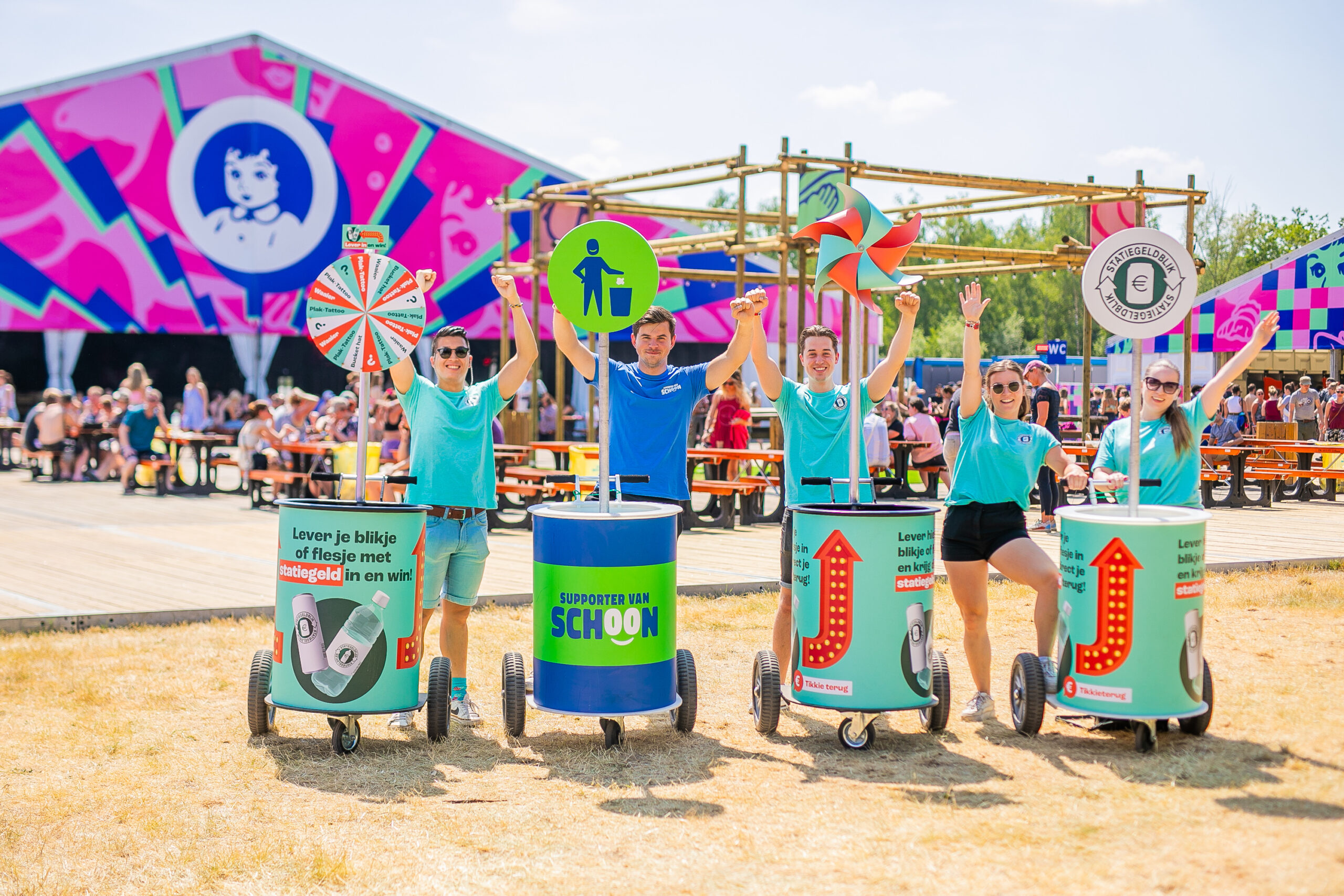 - Het Opruimteam. Ook Statiegeld Nederland zet zich in voor een schone omgeving. Dat doen ze in samenwerking met Supporter van Schoon. Leveren bezoekers hun blikjes en flesjes in bij het Opruimteam? Dan krijgen zij hun statiegeld via een Tikkie makkelijk en snel terug. En het Opruimteam gaat met mobiele wagentjes en grijphaken in de aanslag, ze helpen samen het terrein schoon te houden en ze activeren de bezoekers om mee te doen met deze beweging. Zo is het voor iedereen een feestje!