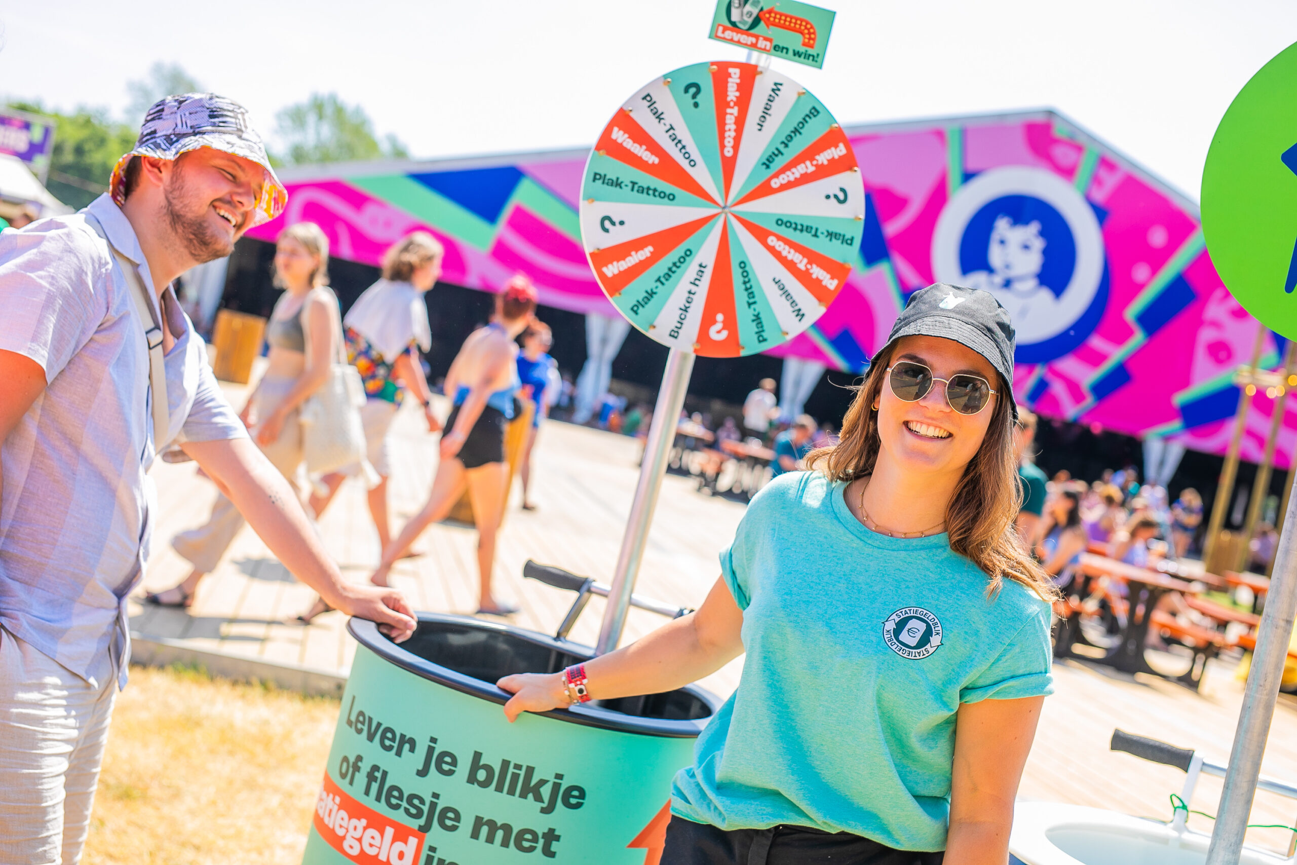 - Het Rad van Fortuin. Het Rad van Fortuin zorgt ervoor dat festivalgangers het evenemententerrein zélf opruimen. Lever 2 blikjes of flesjes in en maak kans op een unieke festival-musthave. Een statiegeld buckethat of plaktattoos bijvoorbeeld.
