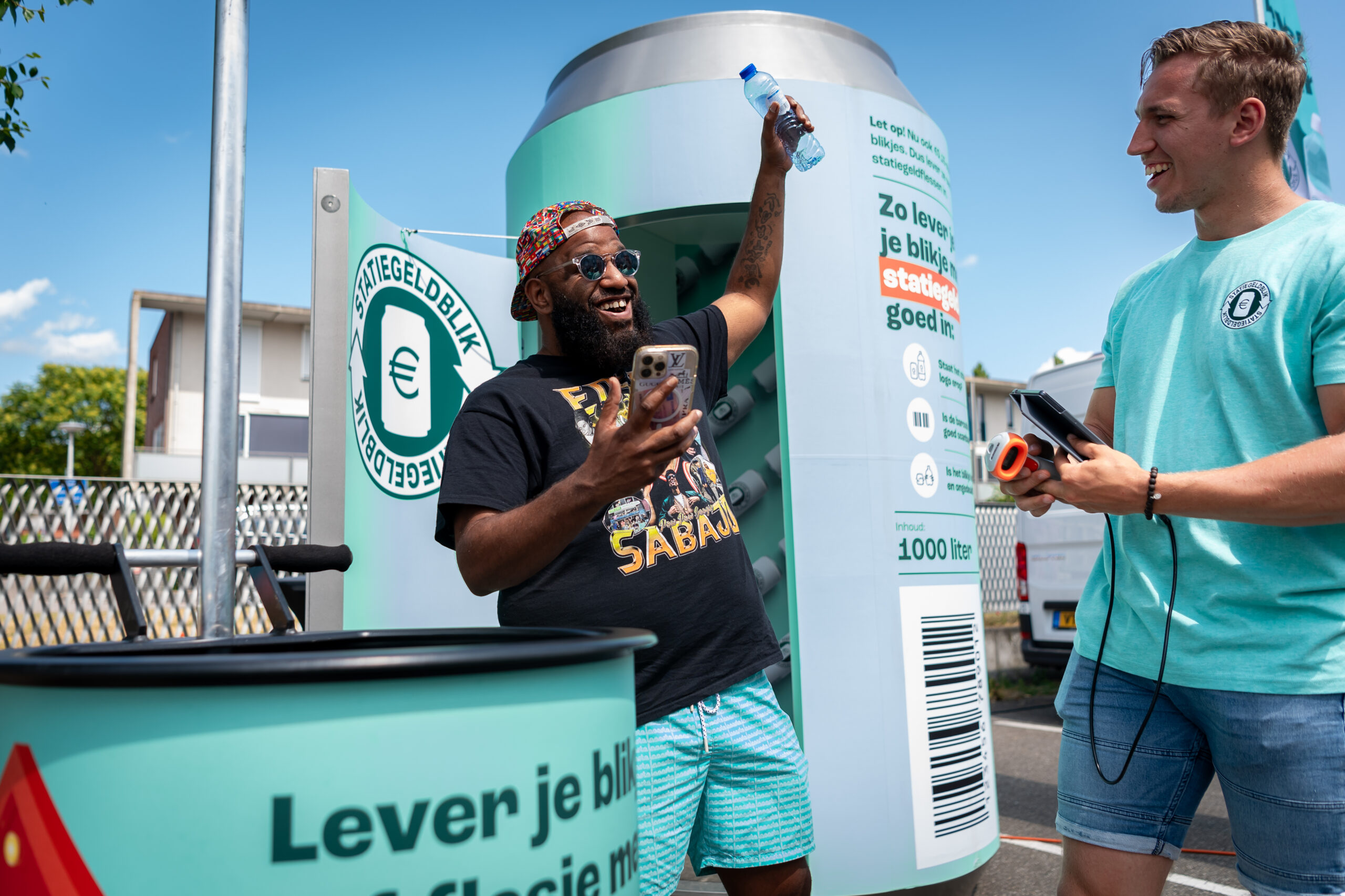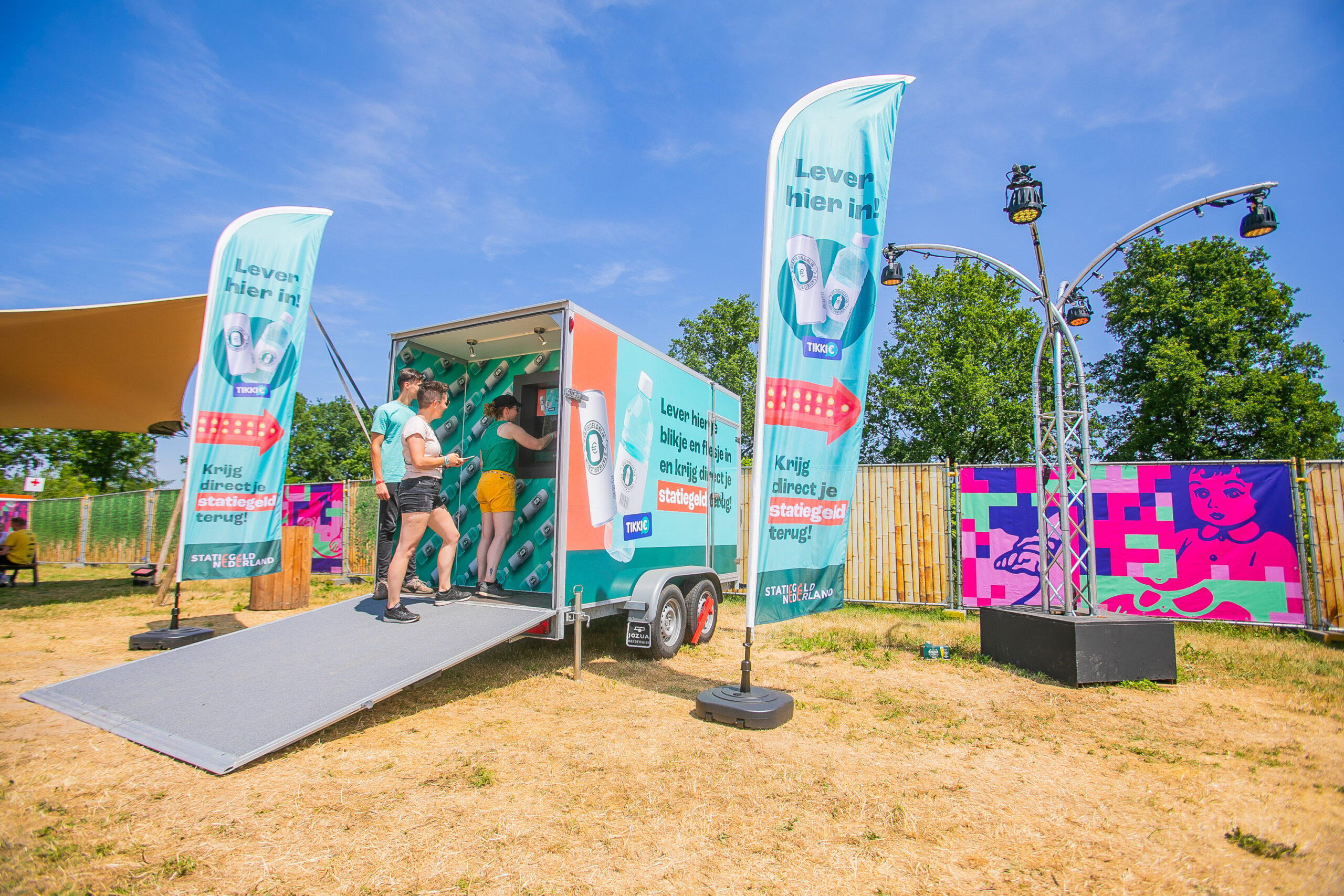 - Mobiele innamemachine. De bekende innamemachine uit de supermarkt, speciaal voor tijdelijke locaties. Bezoekers leveren hun blikjes en flesjes hier makkelijk in en krijgen het statiegeld direct op hun rekening gestort via Tikkie.