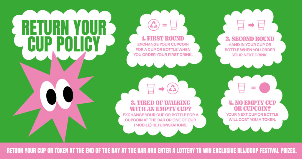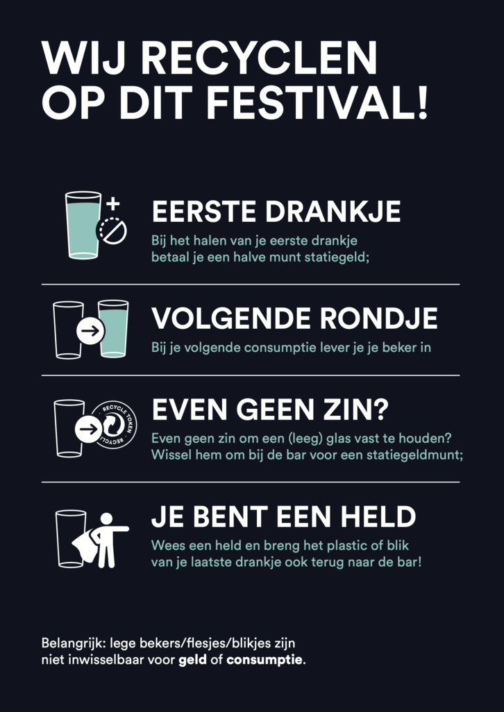 Ongeacht het materiaal wat je gaat gebruiken, het systeem moet ervoor zorgen dat de bekers daadwerkelijk terugkomen voor hergebruik of recycling. Een retoursysteem is dus key. Als dat niet goed gebeurt, is er geen sprake van circulair of afvalvrij. De inzet van een retoursysteem zoals statiegeld of een bekermunt is cruciaal om de bekers retour te krijgen.
