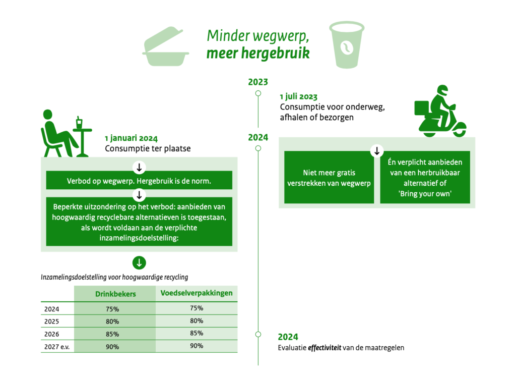 Vanaf 1 juli 2023 geldt er een verbod op wegwerp plastic, hergebruik wordt daarmee de nieuwe norm. Vanaf 1 januari 2024 moeten evenementenorganisatoren bekers en voedselverpakkingen hergebruiken, of hoogwaardig recyclen. Ben jij hier al op voorbereid? Op 29 november 11.00-12.45 staat er weer een webinar op het programma, tijdens deze interactieve online bijeenkomst kom je alles te weten over deze regelgeving en de mogelijkheden in de praktijk.